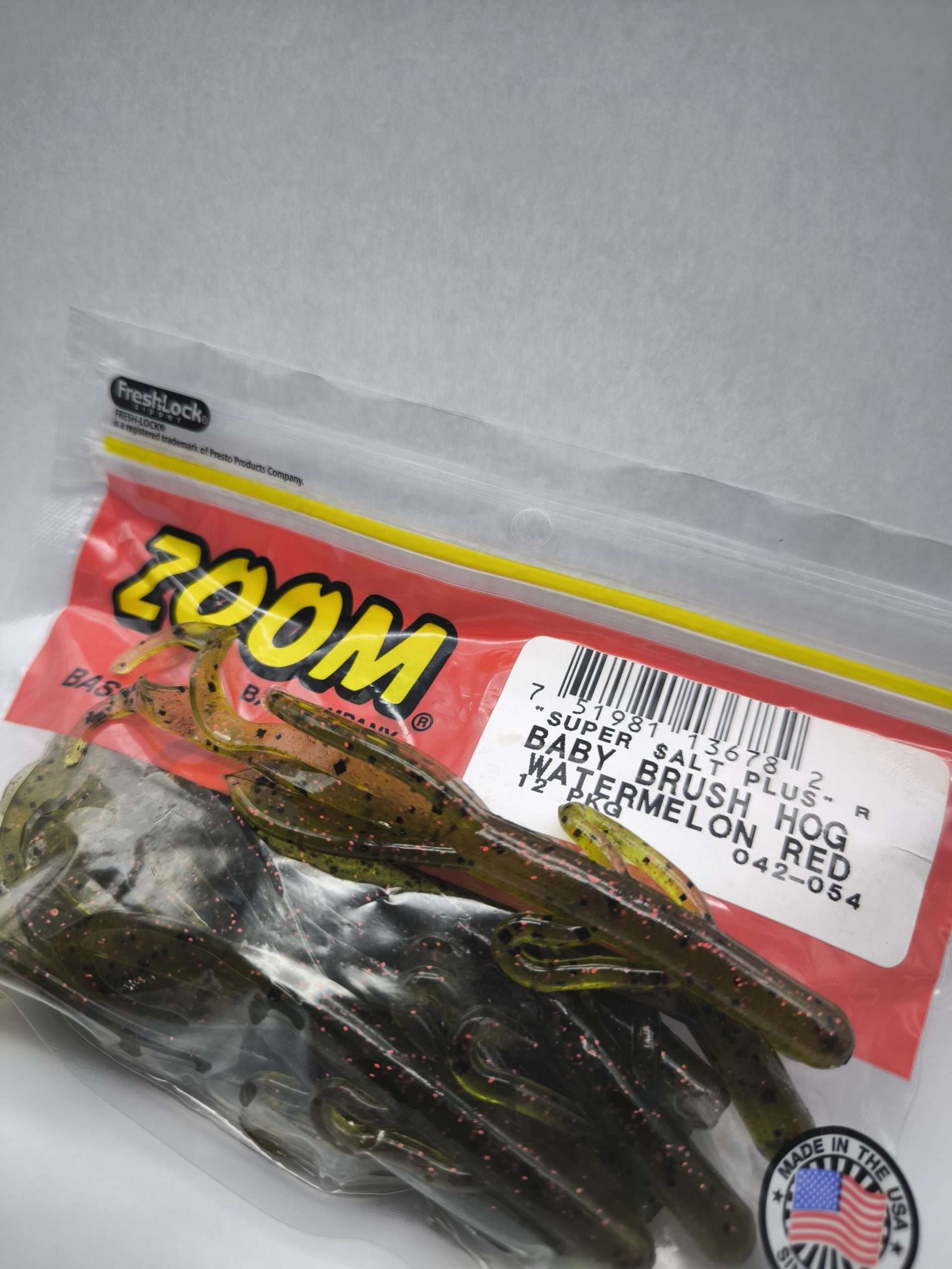El baby brush craw zoom watermelon red combina la silueta clásica del Brush Hog con una mejora clave: garras de cangrejo en lugar de colas rizadas. Esta modificación le da una mayor presencia y acción agresiva en el agua, ideal para despertar el interés de los black bass más apáticos.