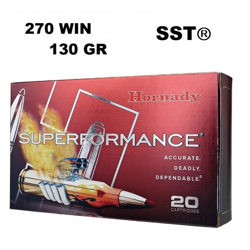 La bala hornady 270win 130gr sst superformance ofrece un rendimiento superior gracias a su proyectil SST (Super Shock Tip), diseñado para generar un impacto contundente y una expansión rápida y fiable incluso a altas velocidades. Su punta de polímero mejora el coeficiente balístico, proporcionando una trayectoria más aerodinámica y precisa a largas distancias.