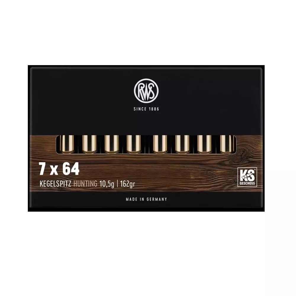 El proyectil RWS KS 7×64 162gr combina una camisa y núcleo de plomo diseñados para alcanzar la máxima precisión y eficiencia en la transmisión de energía.