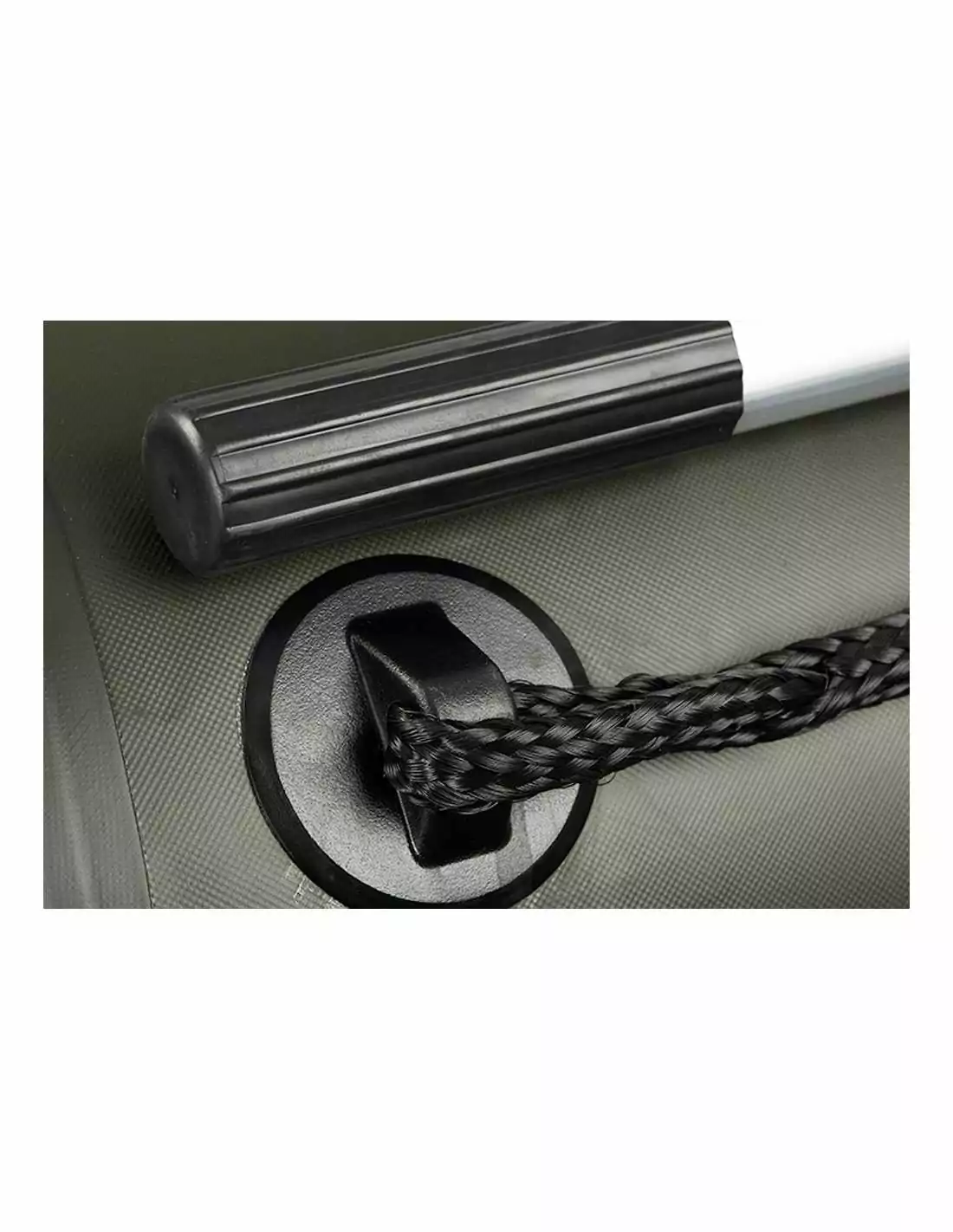 Con un diseño de 2,15 metros, esta barca está fabricada con lona resistente de 0,7 mm en color verde, garantizando durabilidad y resistencia. Su sistema de seguridad de tres cámaras con un diámetro de 42 cm asegura estabilidad en el agua, mientras que la válvula de seguridad de sobrepresión ofrece tranquilidad adicional. El mayor ángulo de proa permite una navegación más suave en las olas, y la placa trasera de soporte de motor está fabricada en láminado negro con plástico reforzado para mayor durabilidad.