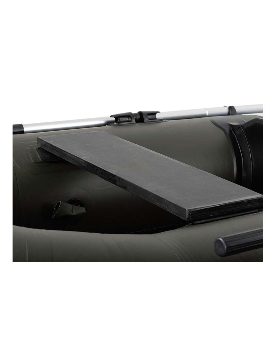 Este modelo se suministra con remos de aluminio y cuenta con un asiento fijo de madera negra para mayor comodidad. Su suelo construido en listones marinos permite un montaje rápido, mientras que el punto de anclaje reforzado con PVC en color negro y los rieles laterales garantizan la máxima protección. Con un cable negro resistente a lo largo de todo el barco, es ideal para ser usado con un motor de 45 libras.