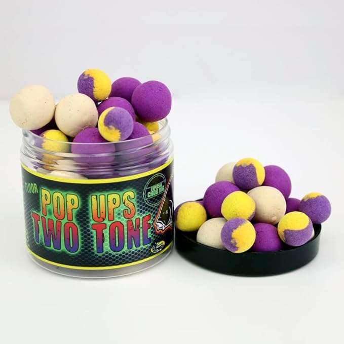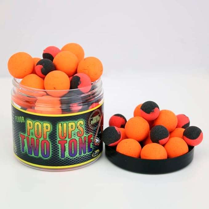 Cada bote incluye pop-ups fluorescentes de 14mm y 20mm en dos tonos, en sabores como Robin Red, Squid & Octopus, Banana & Strawberry, Krill & Crab, Pineapple & Scopex, Garlic y Bloody & Mulberry. La combinación de tamaños y colores maximiza las opciones en cada escenario de pesca.