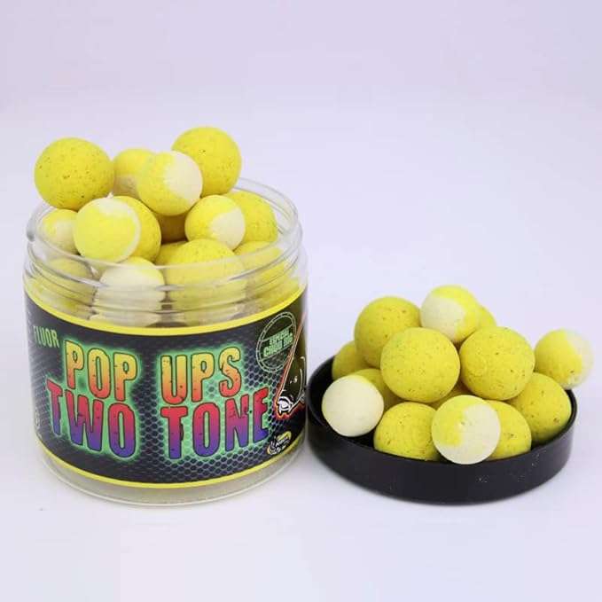 Los boilie flotante 14/20mm pop ups two tone 60gr de Pro Elite Baits son cebos artificiales de alta flotabilidad, diseñados para sesiones prolongadas sin perder efectividad.