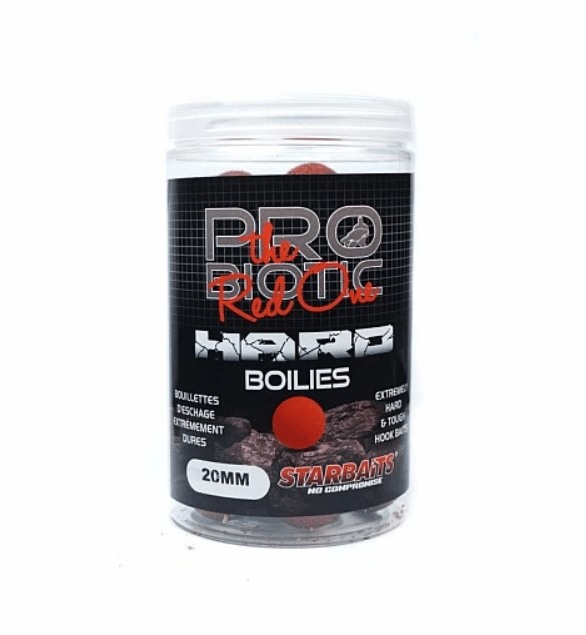 Los Boilies Probiotic 20mm Red One Hard de Starbaits están endurecidos con Robin Red para resistir ataques y atraer a las carpas grandes. Ideal para sesiones largas.