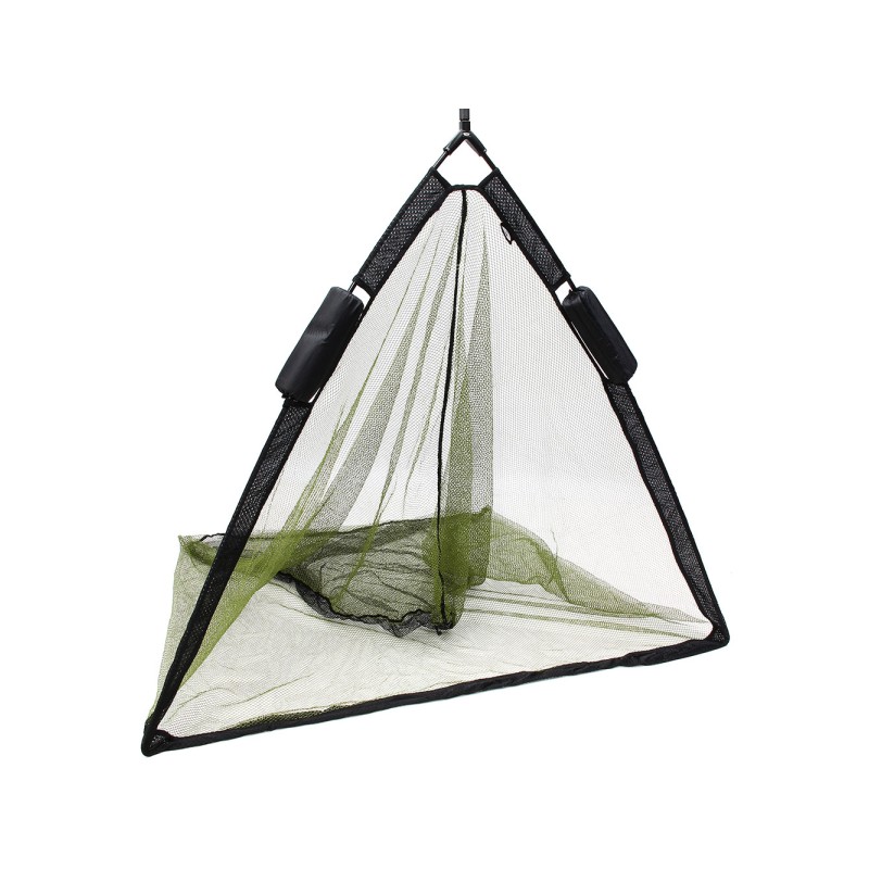 Este modelo verde cuenta con un innovador sistema de flotación que permite que la red se equilibre perfectamente en el agua, manteniendo el extremo ligeramente sumergido. Esto facilita la extracción del pez, especialmente en situaciones de pesca nocturna, ya que reduce las luchas y mejora el control.