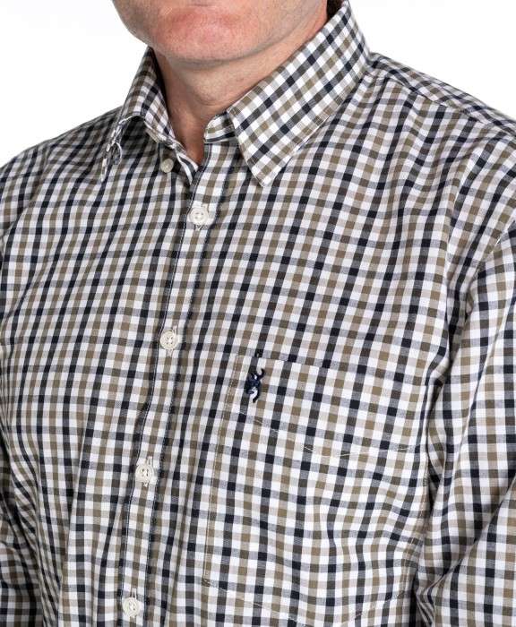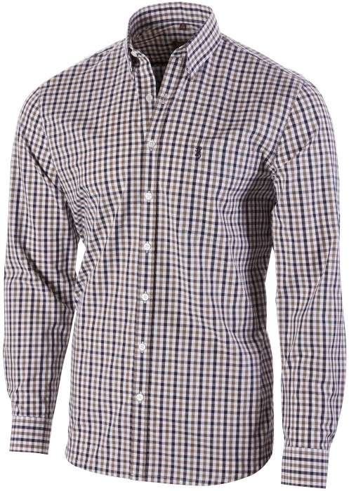 La Camisa Browning Sean en color marrón combina comodidad y estilo relajado, ideal tanto para la caza como para el día a día. Fabricada en algodón, presenta un discreto bolsillo en el pecho y un botón oculto en el cuello para un look pulido.