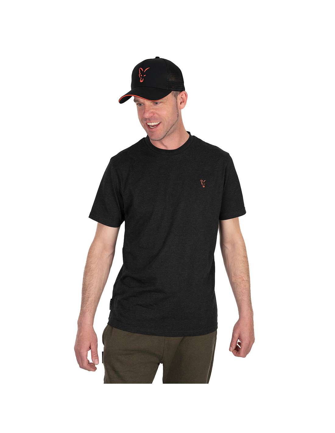 Camiseta Fox Collection Negra y Naranja es una prenda de estilo casual diseñada para los amantes de la pesca y del icónico estilo Fox.