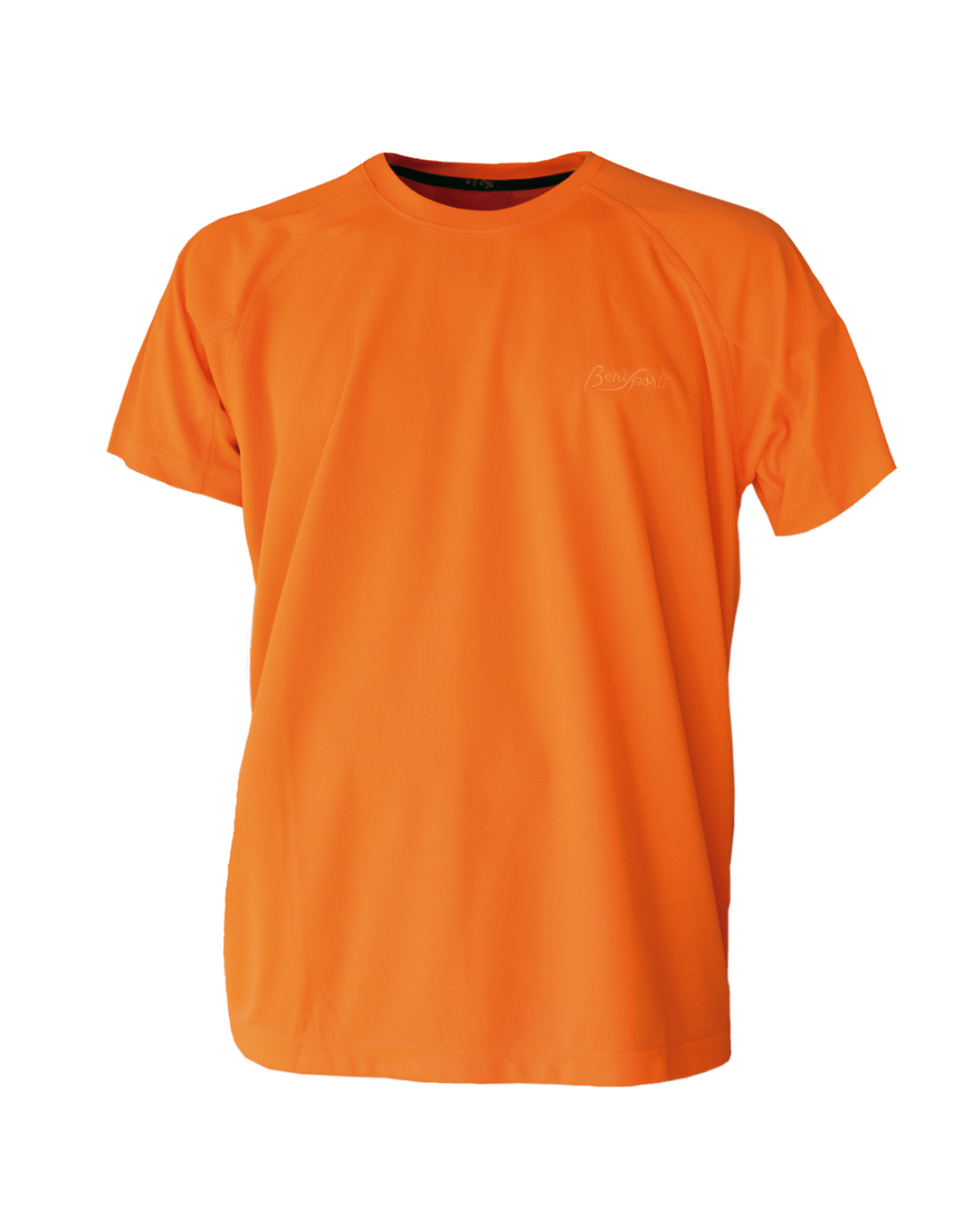 Su diseño con cuello redondo y color naranja flúor garantiza una alta visibilidad, ideal para entornos de caza, senderismo o trabajo en exteriores. El tejido transpirable favorece la ventilación y ayuda a mantener el cuerpo seco incluso en días calurosos o durante el esfuerzo físico.