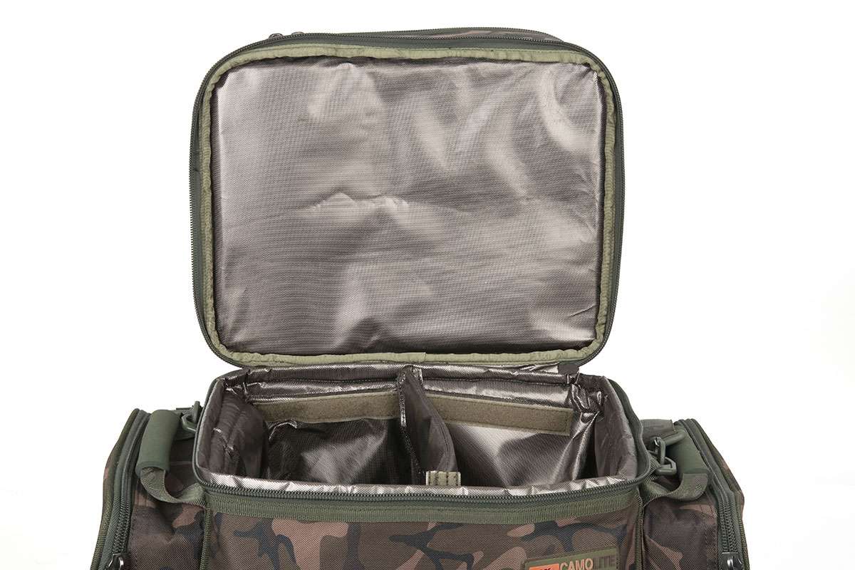 Camolite Fox 2 Man Cooler es una nevera portátil de alta durabilidad, ideal para pesca o camping. Fabricada con poliéster tratado de 500 Denier y un exclusivo diseño de camuflaje Fox, cuenta con cremalleras dobles resistentes y una construcción robusta. Incluye un set completo de utensilios para dos personas, lo que la hace perfecta para comidas al aire libre. Sus bolsillos laterales y deflectores térmicos mantienen alimentos y bebidas frescos. La base y tapa moldeadas, junto con asas de fácil acceso y una correa de hombro acolchada y extraíble, garantizan comodidad en el transporte y uso.