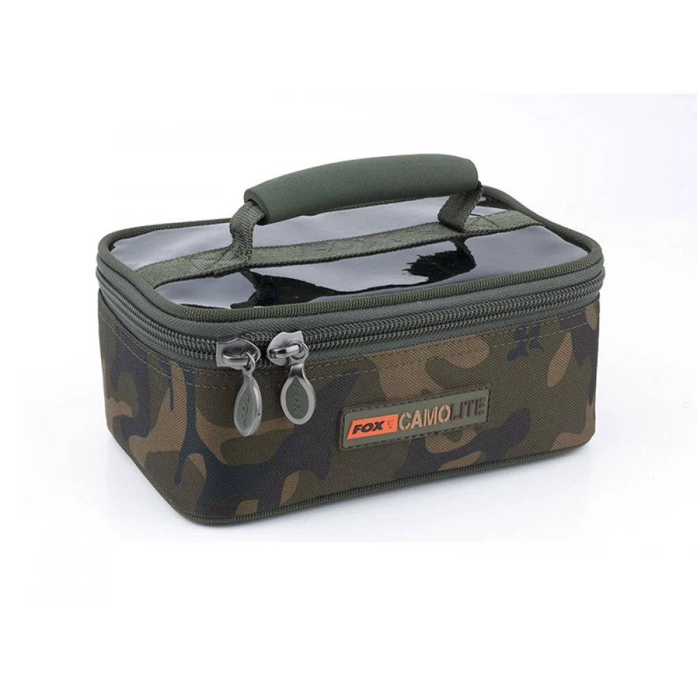 El CAMOLITE FOX RIGID LEAD & BITS BAG es un bolso robusto diseñado para almacenar plomos y accesorios de manera organizada y segura. Destaca por su patrón único de Fox Camo y está equipado con cremalleras dobles de alta resistencia. Incluye una inserción sólida para evitar deformaciones y un mango rígido de EVA para un transporte cómodo. La tapa de PVC tintada facilita la identificación del contenido.