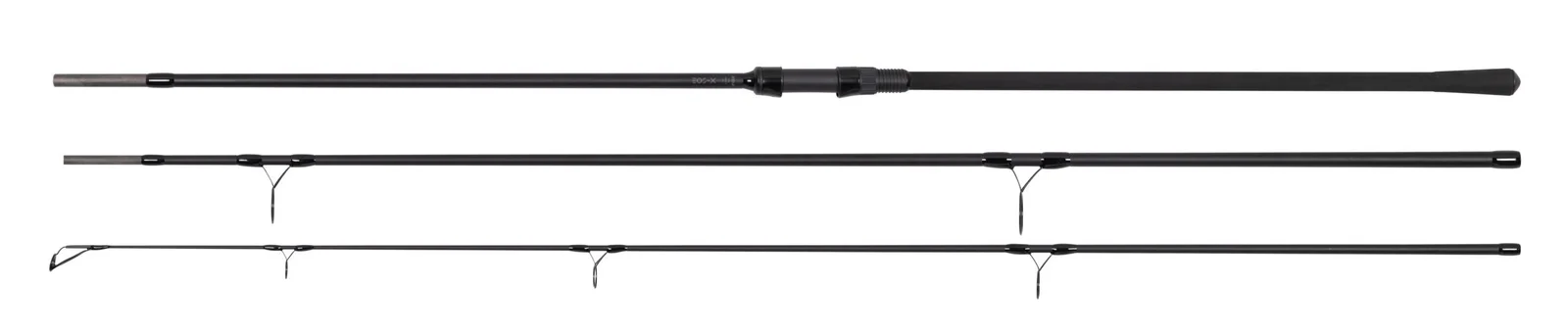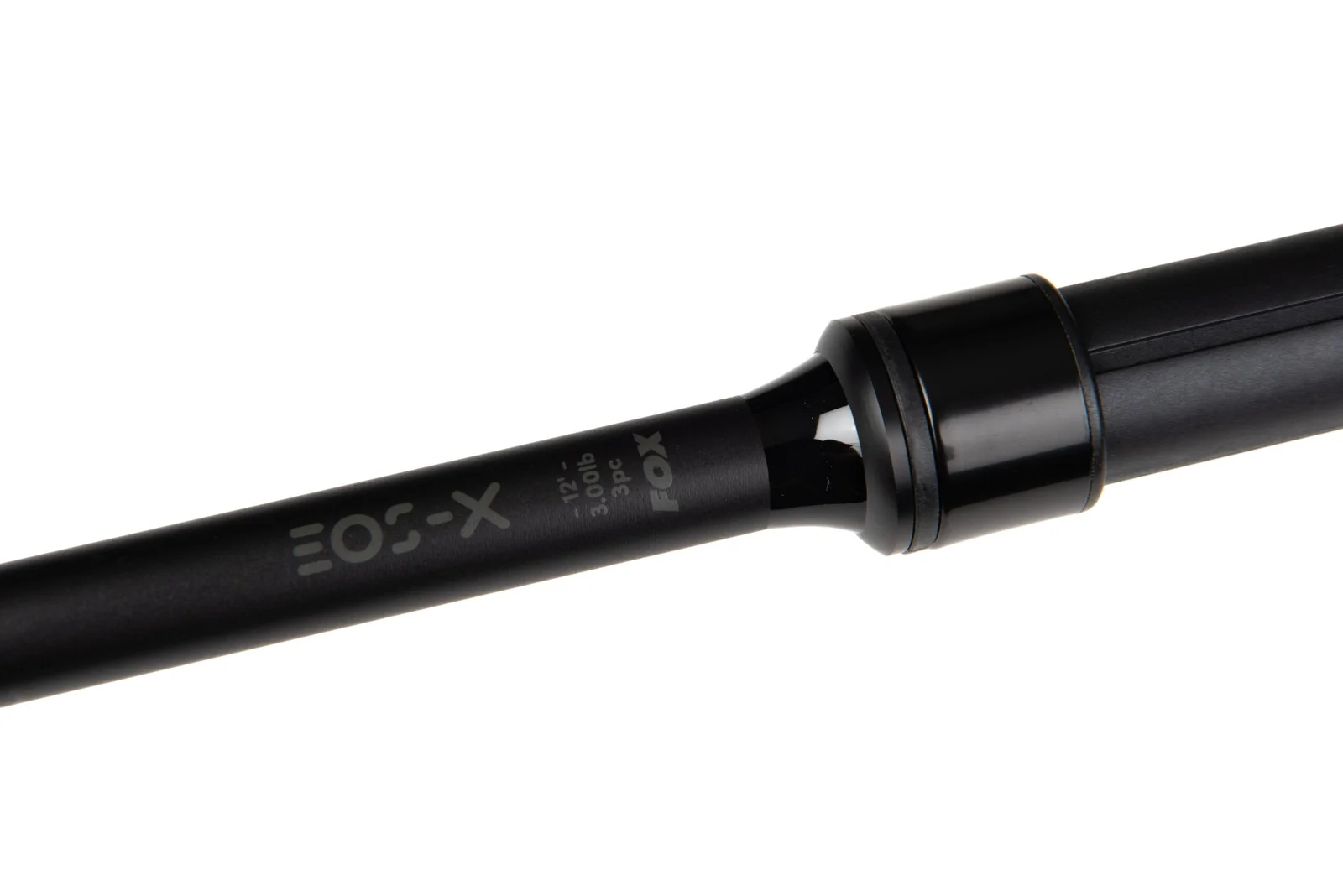 Caña Fox EOS X 12″ 3lb 3 piezas de carbono ligero con guías Slik y empuñadura japonesa full shrink. Transporte fácil y rendimiento óptimo para carpa. Dimensiones: 12 pies