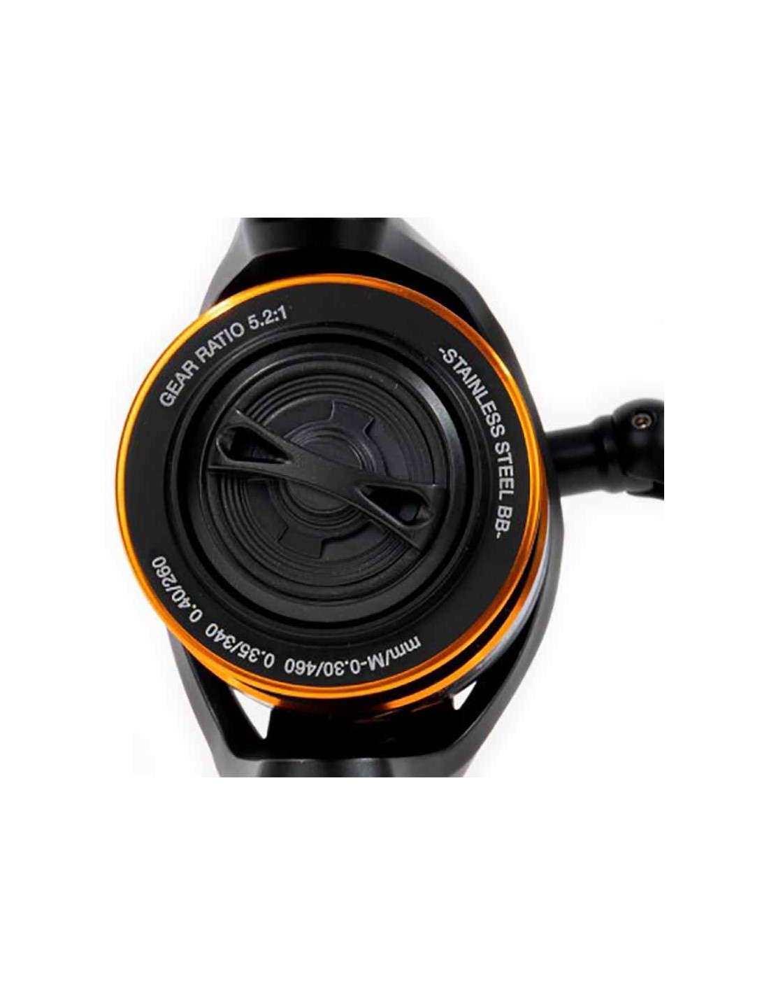 Carrete ligero y resistente, ideal para spinning. Con cuerpo de grafito, freno mixto de 12 kg y manivela de aluminio. 3+1 rodamientos y ratio 5.2:1.