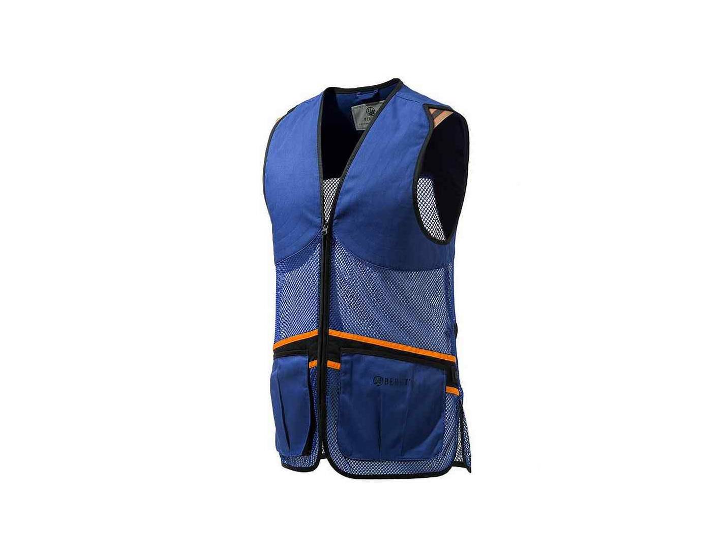 El chaleco Beretta azul es perfecto para hombres y mujeres, tanto diestros como zurdos, ideal para climas cálidos gracias a su tejido de malla. Con dos grandes bolsillos expansibles al frente, bolsillos para cartuchos y parches acolchados de algodón con Beretta. Incluye compartimientos para almohadilla de retroceso Gel-Tech (no incluida) y ventilación a través de malla en la parte delantera y trasera. Su banda ajustable en la parte posterior ofrece un ajuste personalizado.
