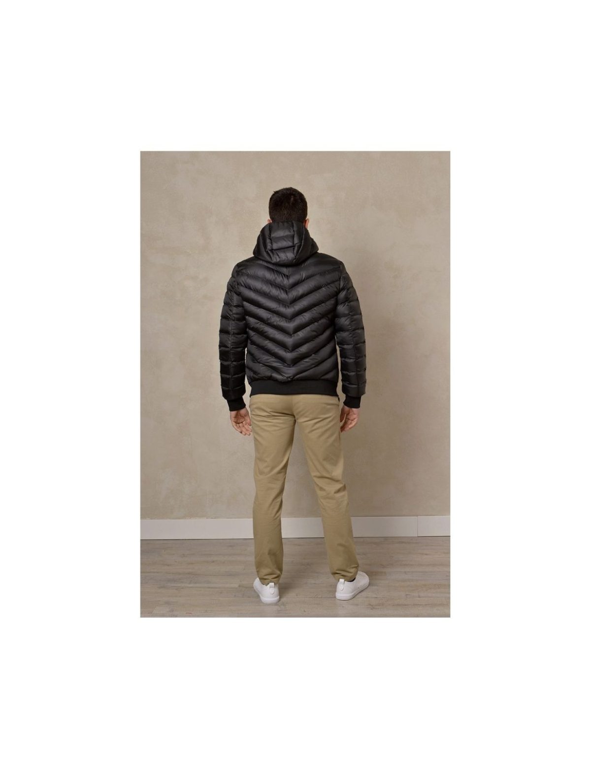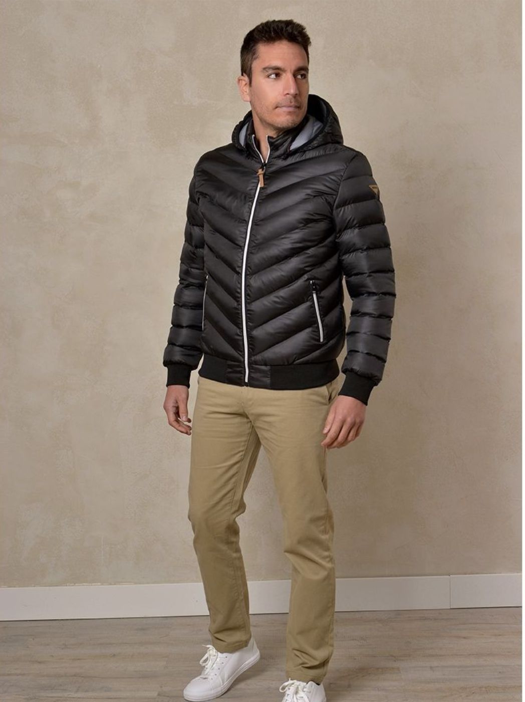 CHAQUETA ALCOLCHADA DISEÑO DIAGONAL CON CAPUCHA