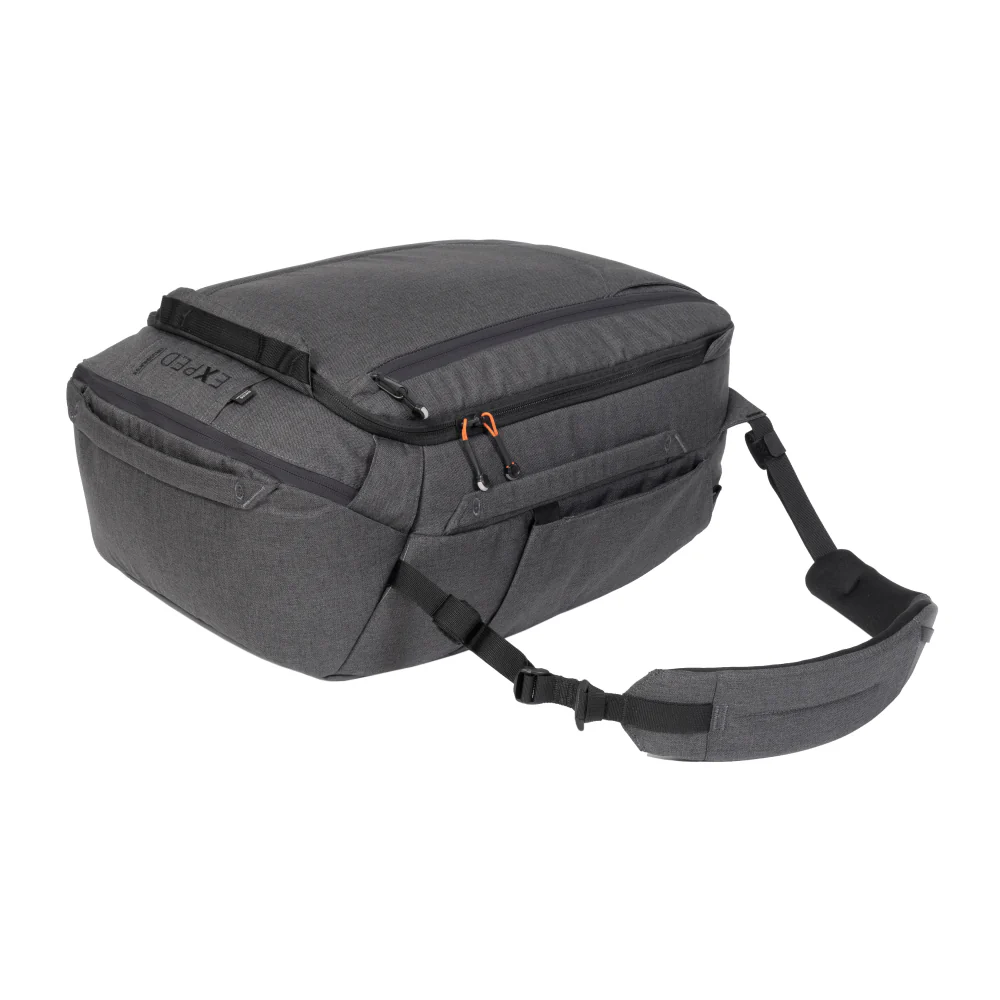 El Cruiser se puede transformar muy rápida y fácilmente en un bolso de hombro elegante y sencillo. Además, las correas para los hombros y las correas de transporte se pueden guardar.