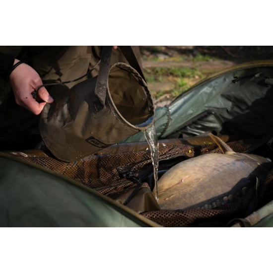 El anillo superior rígido asegura que el cubo conserve su forma, lo que facilita su uso en cualquier situación. Incluye un cordón extraíble de 1,6 m con clip, diseñado para facilitar el llenado y manejo del cubo. Es perfecto no solo para el cuidado de los peces, sino también para la limpieza de manos, la mezcla de cebos y muchos otros usos en el campo.