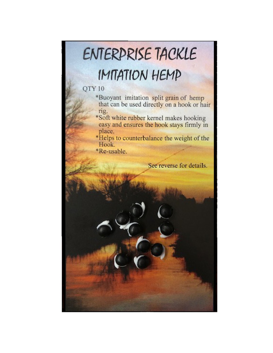 Enterprise Tackle presenta su imitación flotante de grano partido de cáñamo, diseñada para anzuelo directo o montaje de pelo. Con núcleo de goma blanca suave para asegurar la fijación del anzuelo y facilitar su uso.