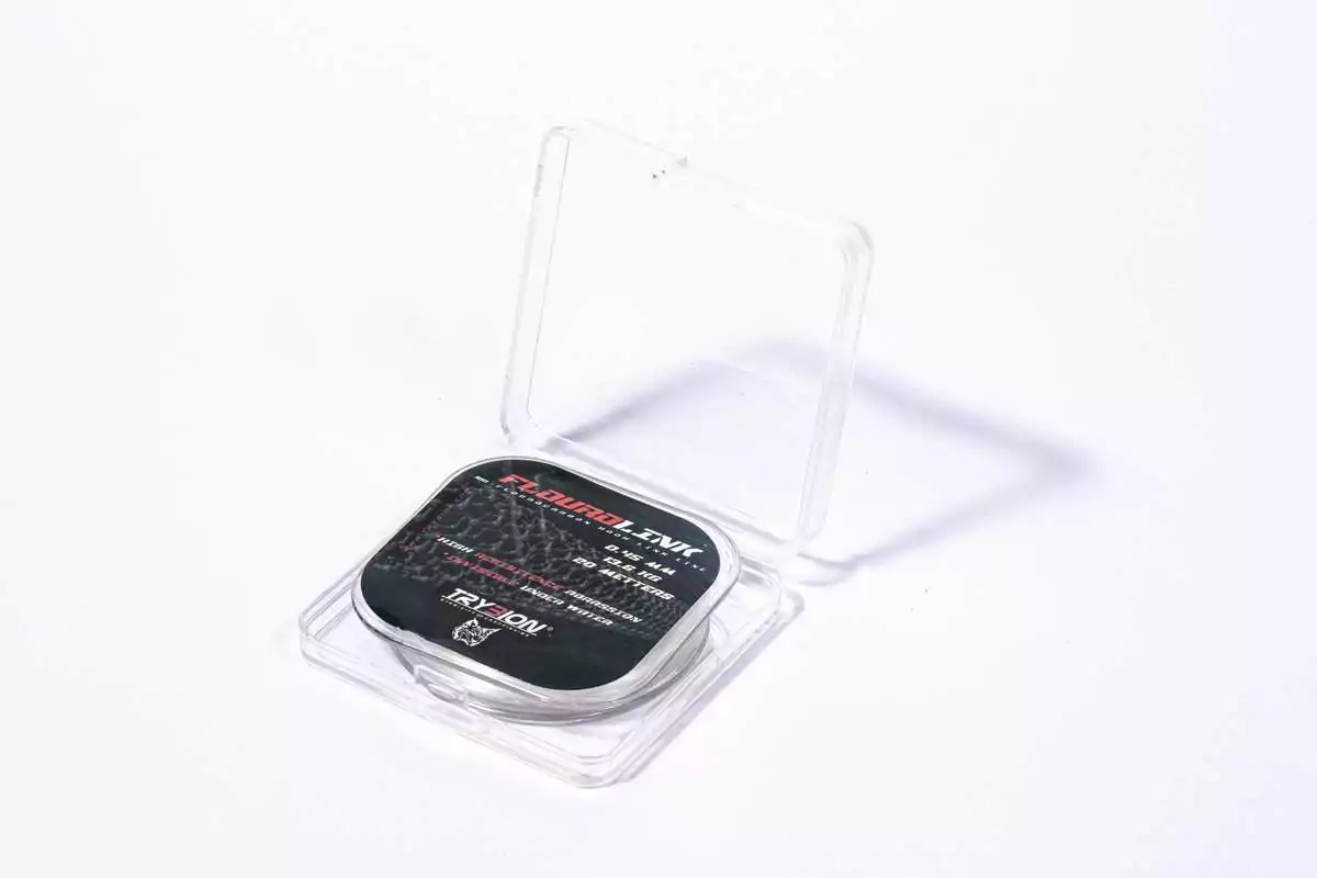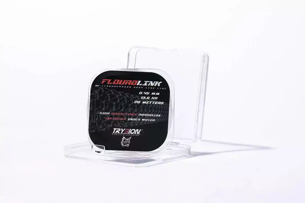 Fluorolink 20m TRYBION, fluorocarbono semirrígido en 0.45mm y 0.52mm. Resistente, invisible bajo el agua y ideal para bajos de pesca.