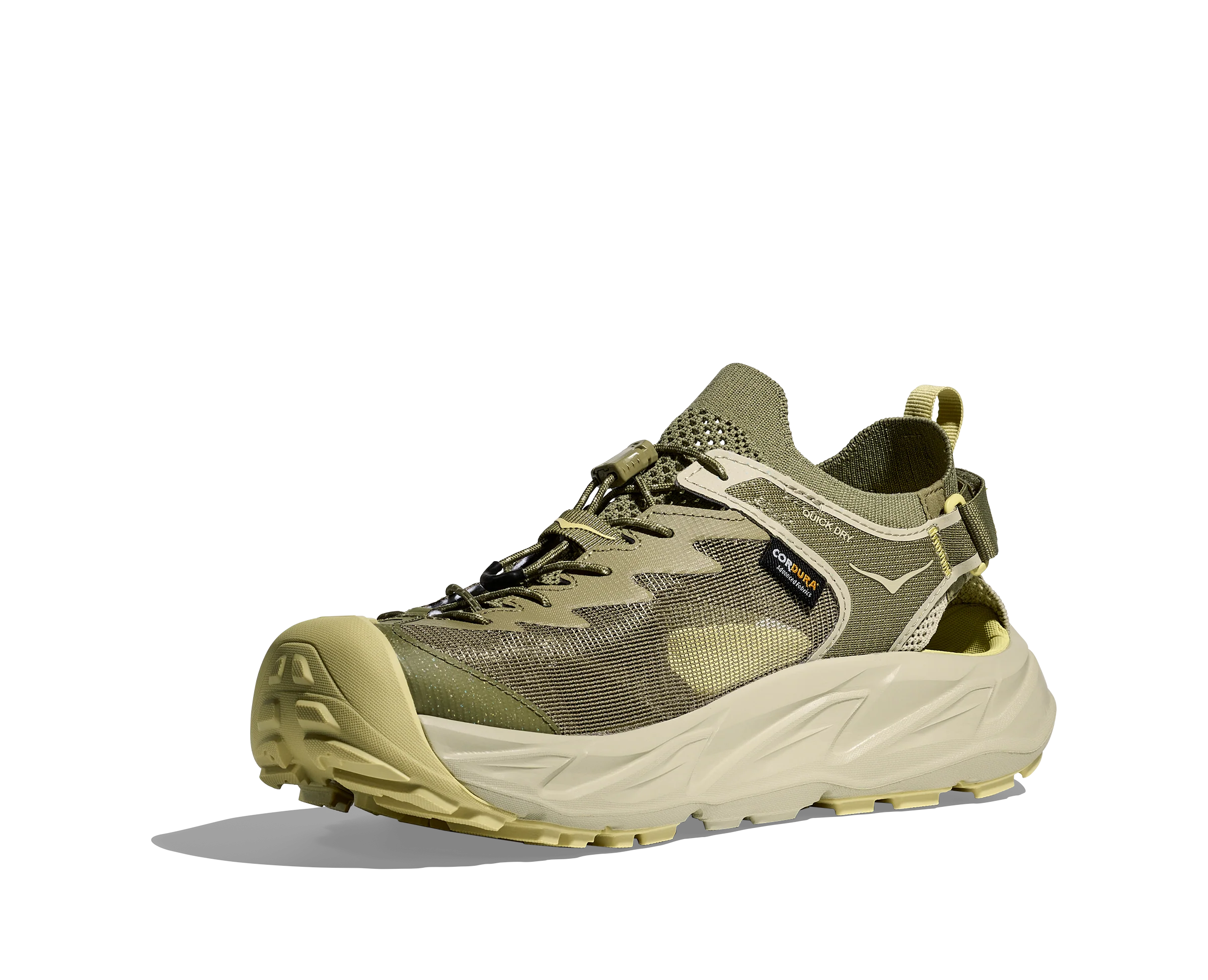 Las Hopara 2 ofrecen prestaciones estupendas en tierra o agua, y se enfrentan a barro, tierra y piedras como si fueran anfibias. Rediseñadas en materiales respetuosos con el medioambiente, hemos implementado una suela superior y una entresuela con un 30 % de caña de azúcar, un empeine de punto 100 % reciclado y unas capas de malla Cordura® también 100 % reciclada que permiten el drenaje de agua al tiempo que mantienen a raya las piedras y el polvo. Cuentan, además con tensores rápidos en los cordones, correa ajustable en el talón y propiedades hidrófugas de secado rápido, para que no tengas que quitártelas cuando te dispongas a vadear arroyos.