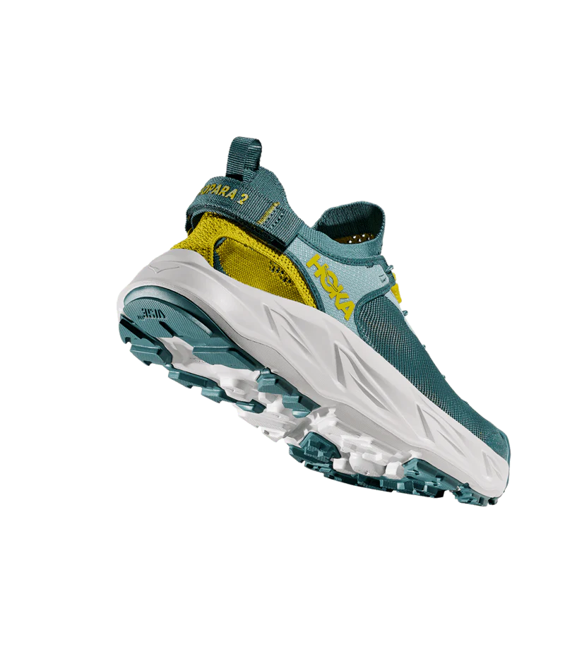 Las Hopara 2 ofrecen prestaciones estupendas en tierra o agua, y se enfrentan a barro, tierra y piedras como si fueran anfibias. Rediseñadas en materiales respetuosos con el medioambiente, hemos implementado una suela superior y una entresuela con un 30 % de caña de azúcar, un empeine de punto 100 % reciclado y unas capas de malla Cordura® también 100 % reciclada que permiten el drenaje de agua al tiempo que mantienen a raya las piedras y el polvo. Cuentan, además con tensores rápidos en los cordones, correa ajustable en el talón y propiedades hidrófugas de secado rápido, para que no tengas que quitártelas cuando te dispongas a vadear arroyos.