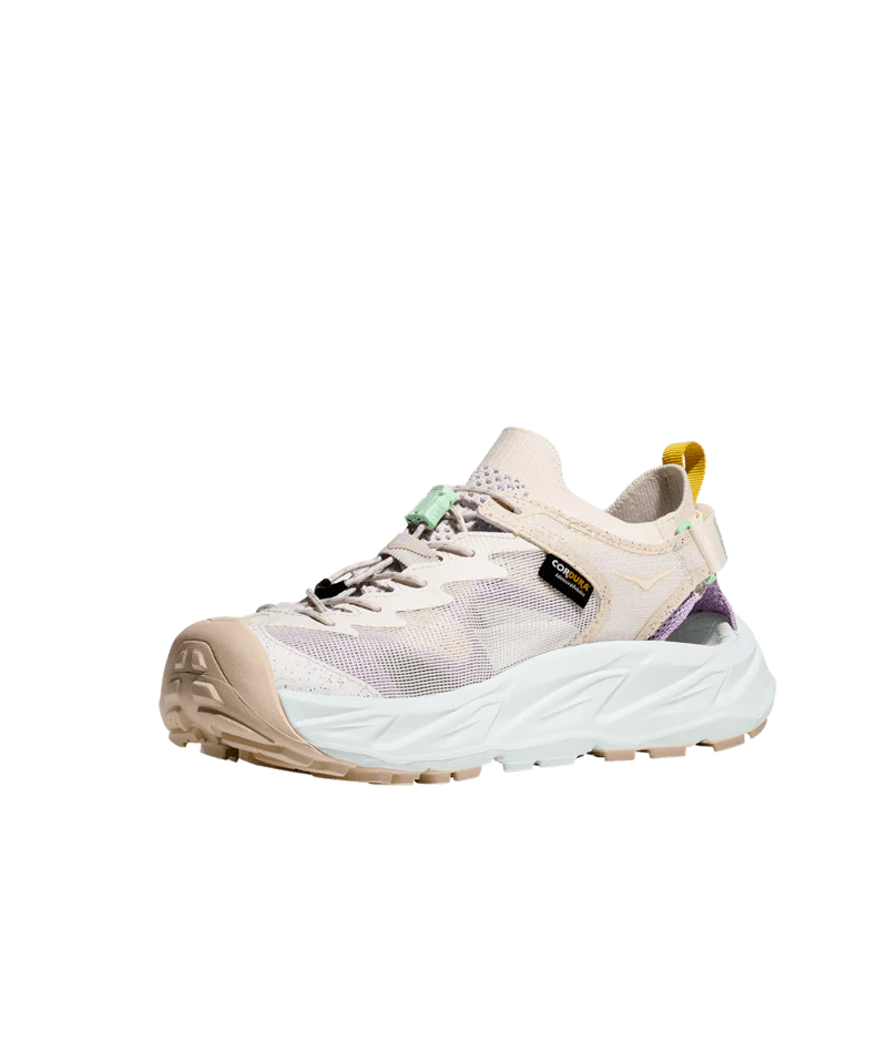 Las Hopara 2 ofrecen prestaciones estupendas en tierra o agua, y se enfrentan a barro, tierra y piedras como si fueran anfibias. Rediseñadas en materiales respetuosos con el medioambiente, hemos implementado una suela superior y una entresuela con un 30 % de caña de azúcar, un empeine de punto 100 % reciclado y unas capas de malla Cordura® también 100 % reciclada que permiten el drenaje de agua al tiempo que mantienen a raya las piedras y el polvo. Cuentan, además con tensores rápidos en los cordones, correa ajustable en el talón y propiedades hidrófugas de secado rápido, para que no tengas que quitártelas cuando te dispongas a vadear arroyos.