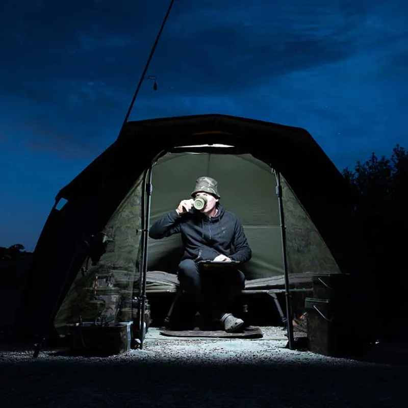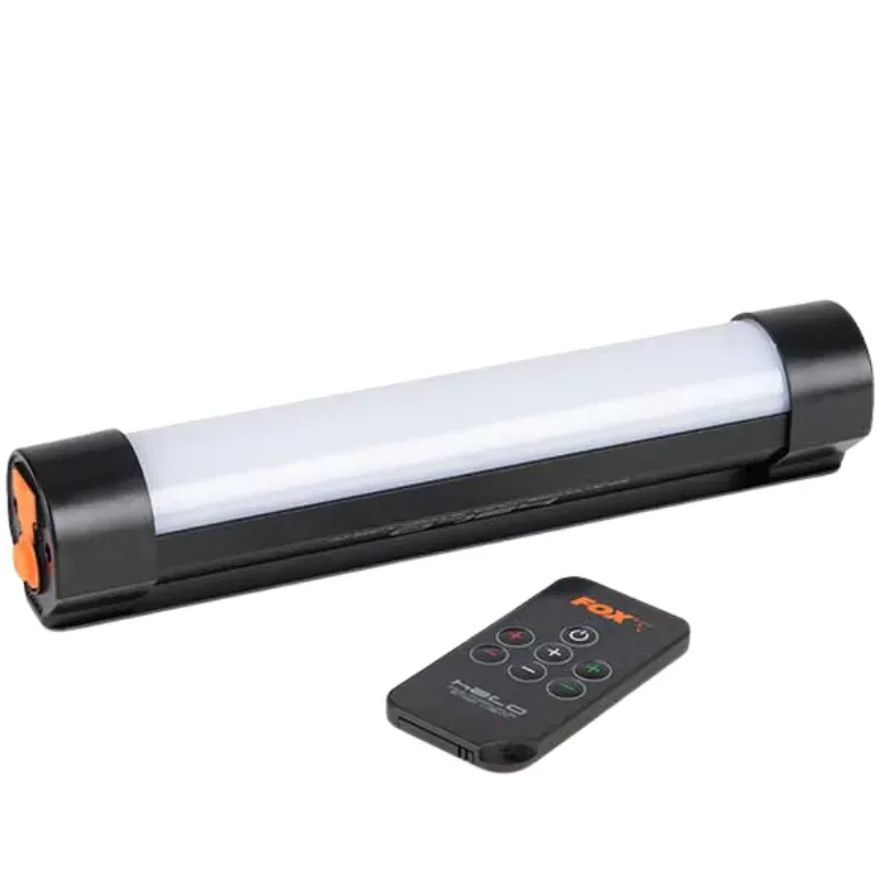 La lámpara fox halo multicolour strip light es la compañera ideal para tus sesiones de pesca nocturna. Diseñada para bivvies y refugios, ofrece iluminación blanca, roja y verde con control remoto para ajustar brillo e intensidad sin moverte.