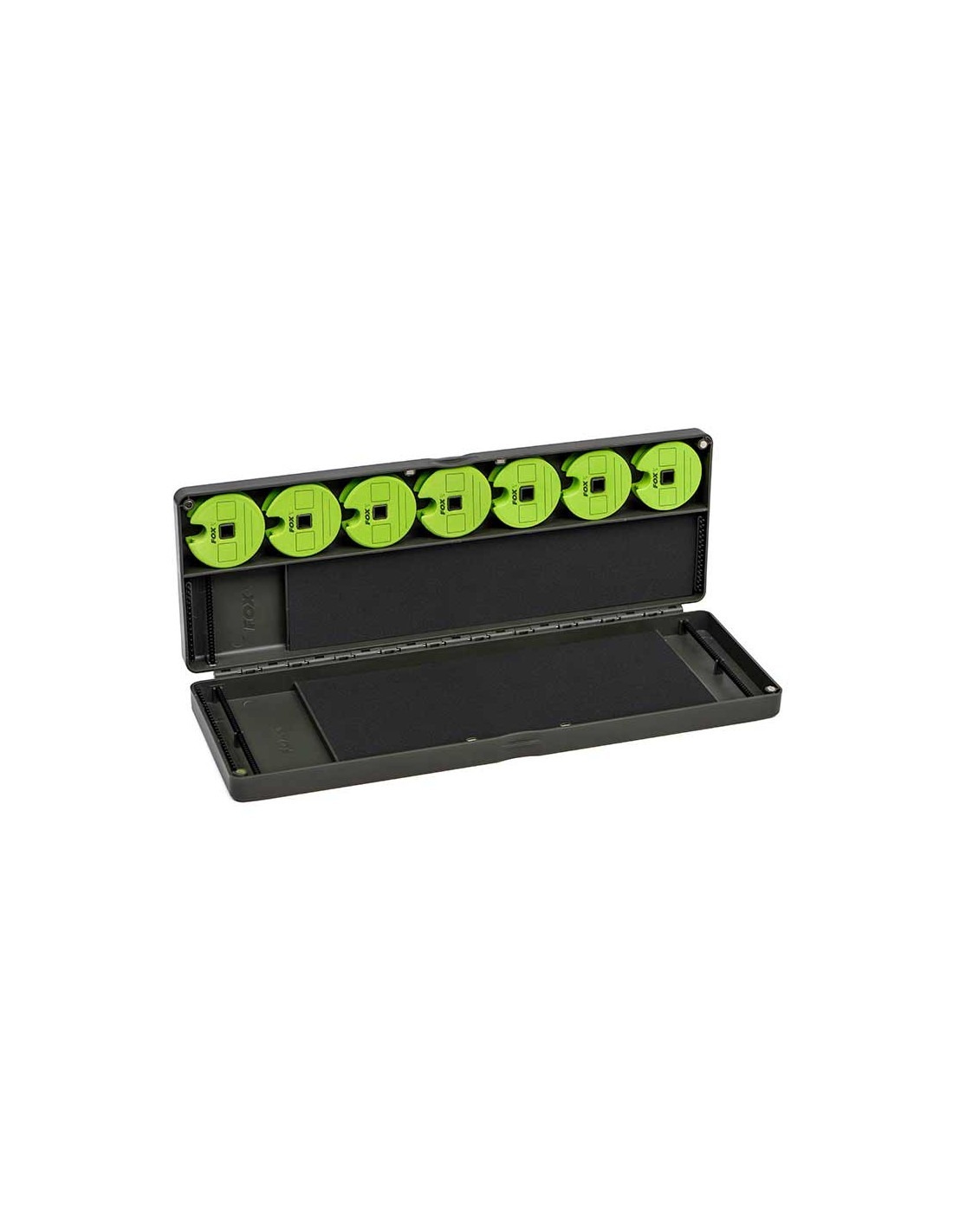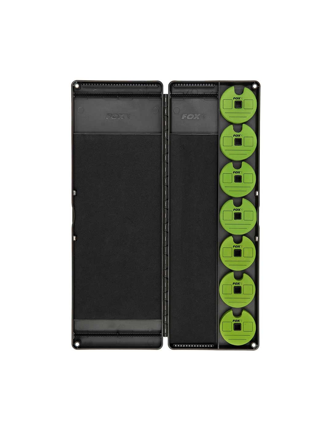 Los 7 discos de EVA permiten guardar aparejos como Chods, Spinners y Zigs de forma segura en postes moldeados. Su cierre magnético garantiza la seguridad de los aparejos, y su espuma EVA de alta densidad asegura que las clavijas se mantengan firmes.