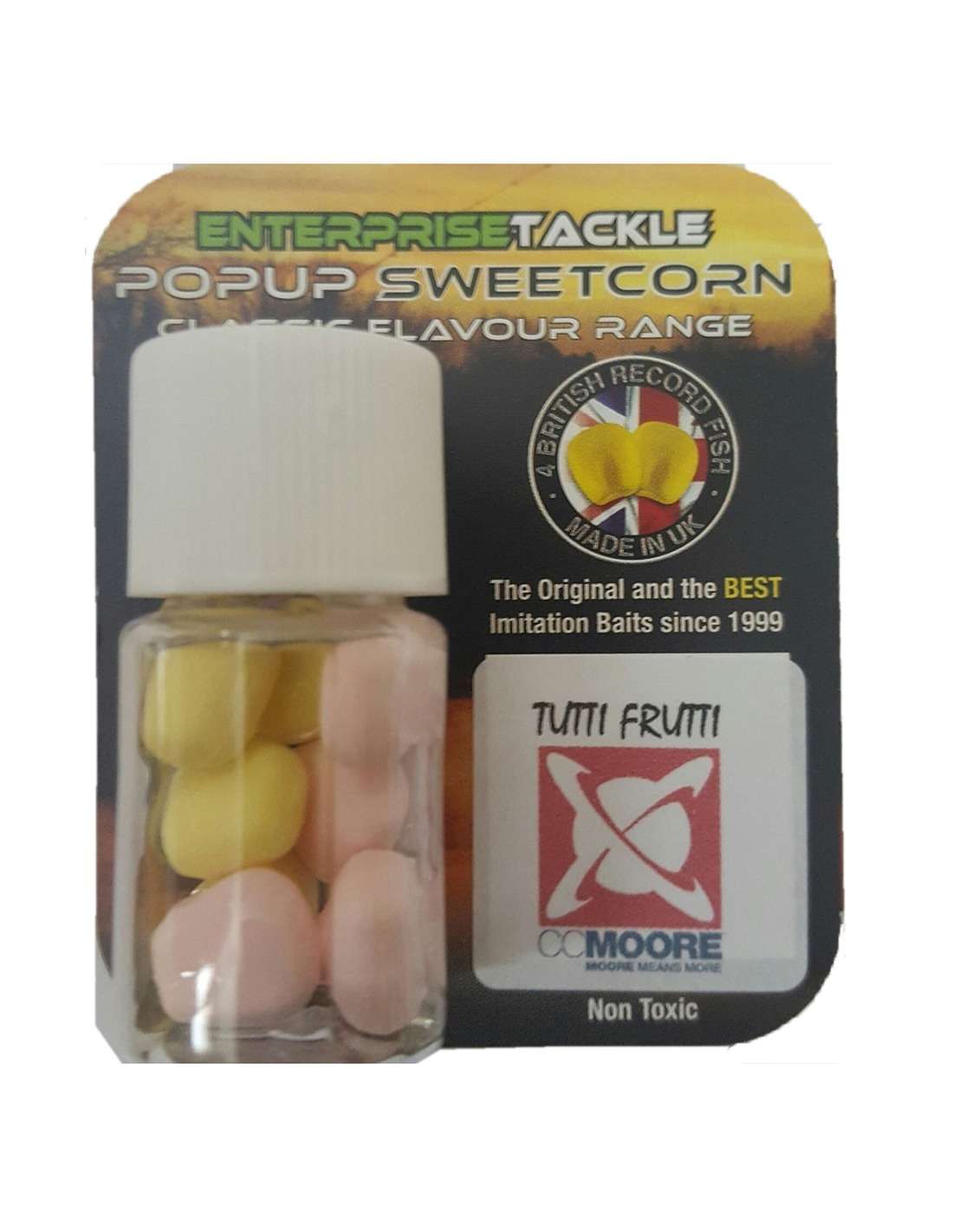 Enterprise Tackle presenta el Pop-Up Tutti Frutti, un cebo de maíz flotante de sabor líquido que incorpora algunos de los sabores y aditivos más exitosos de todos los tiempos. Este cebo ha demostrado consistentemente mejores resultados en comparación con la versión normal, atrayendo a los peces tanto visual como olfativamente.