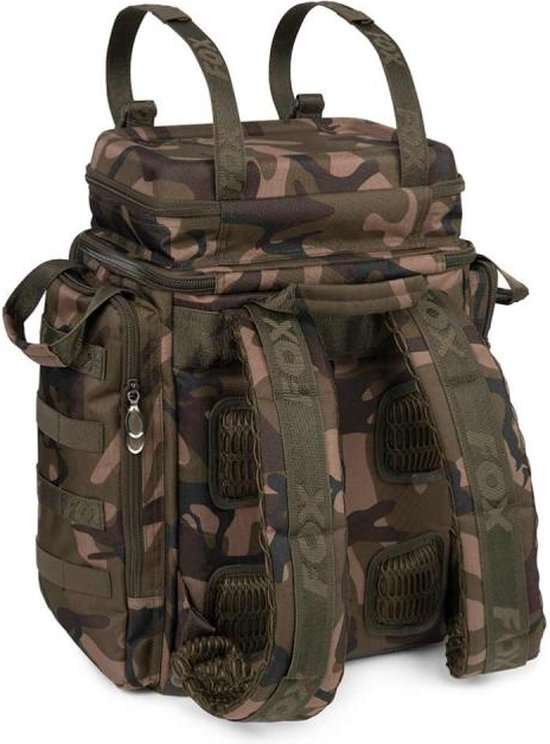 Esta mochila está diseñada para soportar condiciones duras, con una base resistente al desgaste y fácil de limpiar que aumenta su durabilidad. Además, tiene correas adicionales para fijar una alfombra de desenganche o una silla ligera. Con el exclusivo diseño de camuflaje Fox Camo, esta mochila no solo es funcional, sino también atractiva.