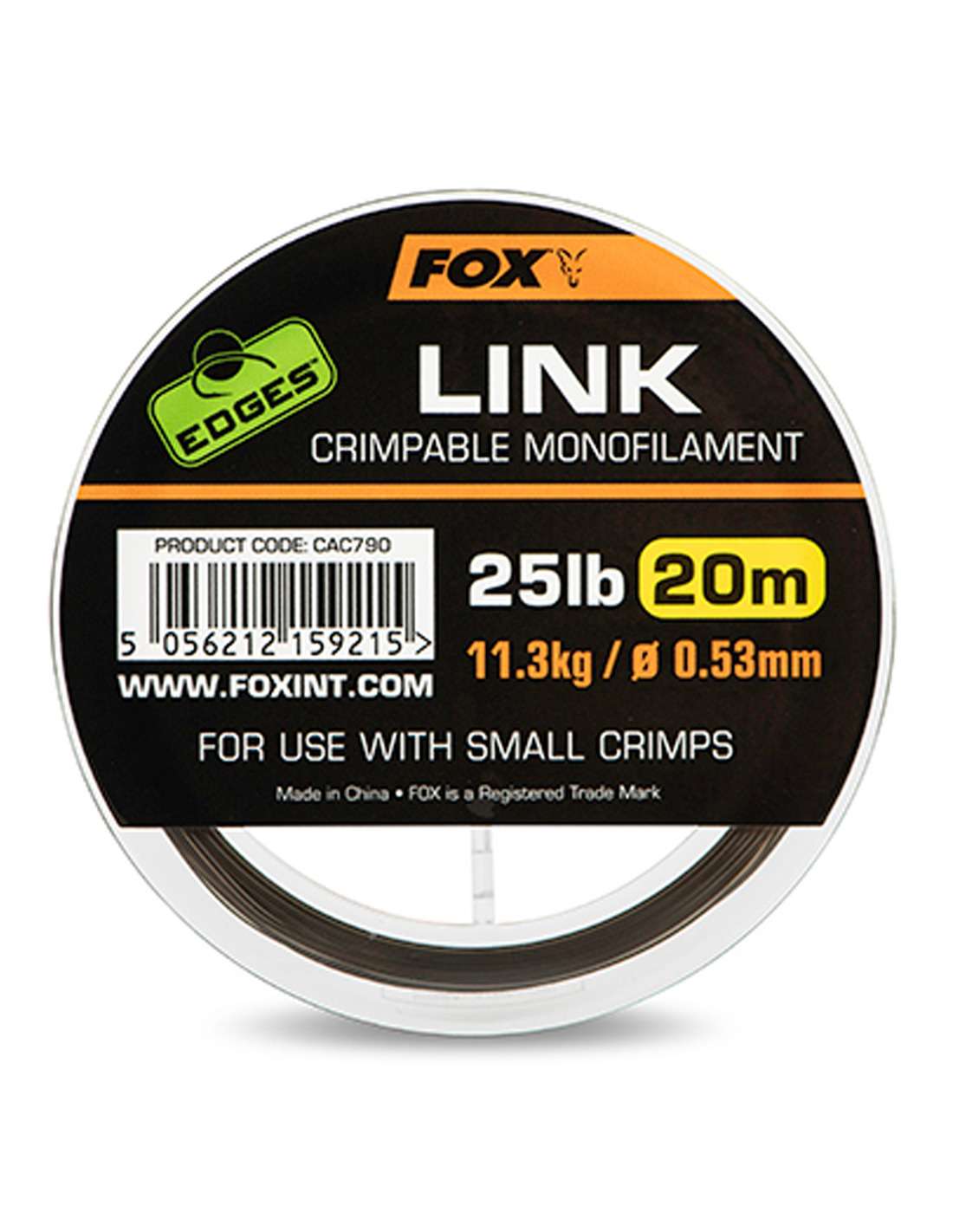 El monofilamento Fox Edges Link Trans Khaki está diseñado para trabajar con los Edges Crimps, creando aparejos engarzados limpios y precisos.