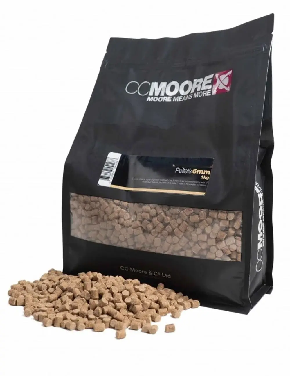 Pellets CC Moore 6mm 1kg, ideales para carpfishing y cebado rápido. Disponibles en Pacific Tuna, Odyssey XXX y Live System.