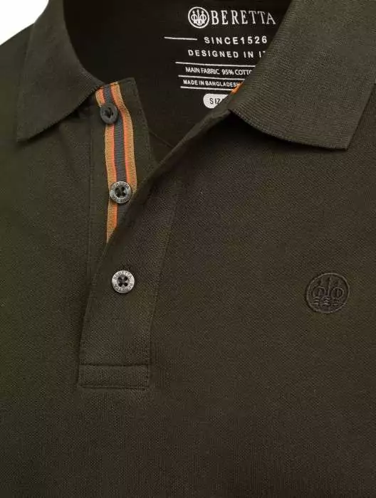El polo Beretta EVO Green Moss es un polo de manga corta para hombre ideal para actividades al aire libre, como caza o tiempo libre, así como para su uso diario. Confeccionado en algodón pique de 220 g/m² y elastano, ofrece una ajuste normal que garantiza comodidad durante todo el día. El logo Beretta bordado en el pecho añade un toque distintivo y de calidad. Su diseño elegante en color Green Moss lo convierte en una opción versátil tanto para la ciudad como para el campo.