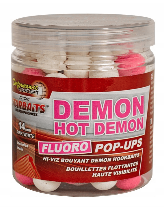 Los Pop Ups Fluoro Hot Demon 14mm/80gr Starbaits son cebos flotantes de alta visibilidad diseñados para maximizar la atracción en cualquier escenario de pesca. Su vibrante color fluoro y su potente aroma los convierten en una opción ideal para destacar en aguas turbias o de baja visibilidad.
