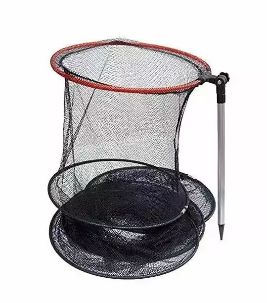 Este setzkescher está diseñado para ser práctico y eficiente en el agua, ofreciendo un diámetro amplio para facilitar el almacenamiento de los peces capturados sin causarles daño. La combinación de la red y el espárrago de tierra ofrece una solución integral para cualquier pescador que busque fiabilidad y seguridad al momento de manejar su captura.