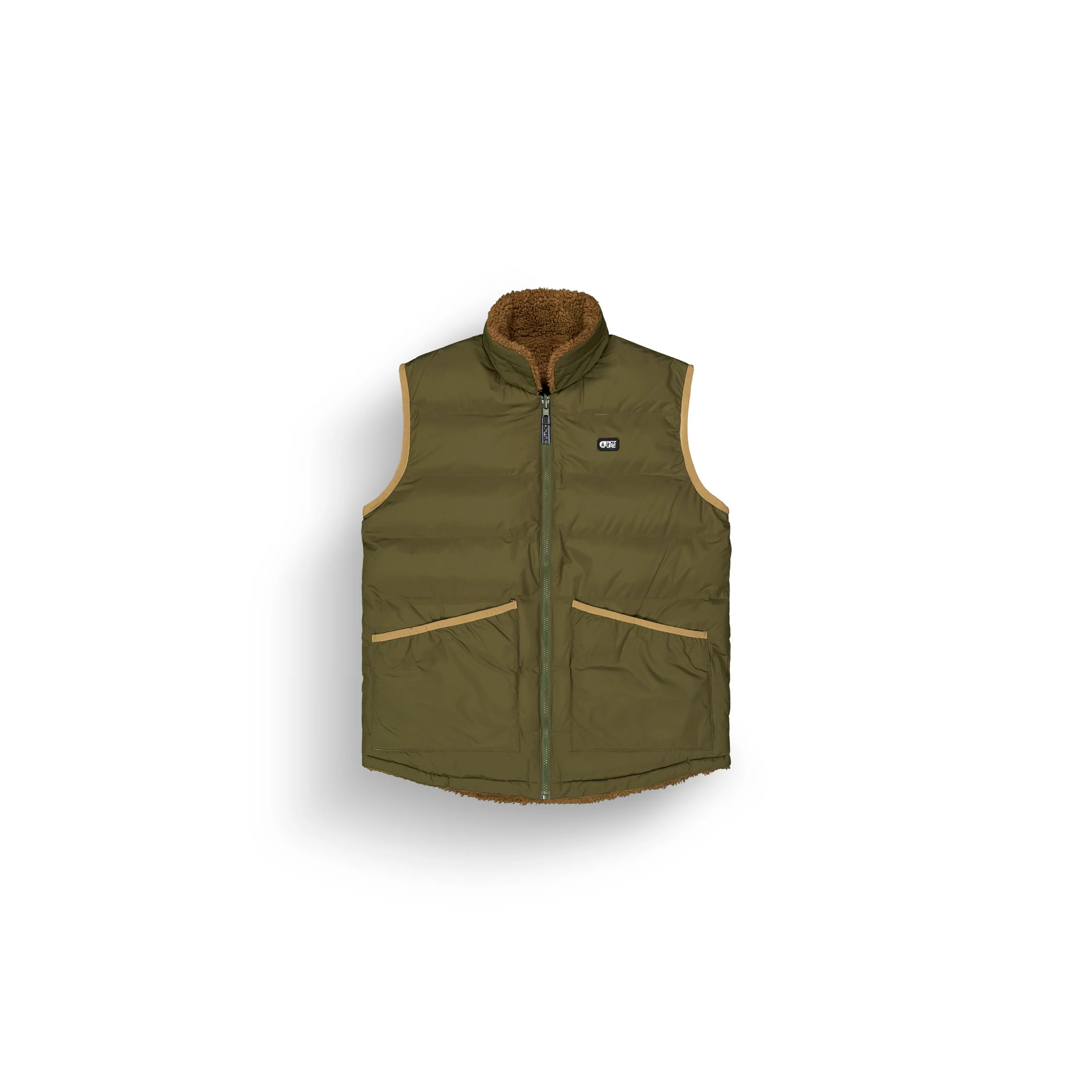 El chaleco Russello combina abrigo y moda. Diseño reversible: un lado tipo pluma repelente, otro lado sherpa suave. Fabricado con materiales reciclados, es ligero, cálido y versátil para cualquier look de invierno.