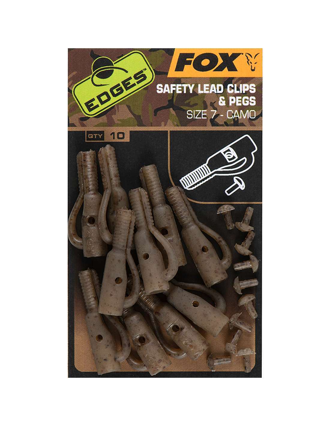 Los Safety Lead Clips Camo Fox son un componente esencial para los pescadores que buscan fiabilidad y rendimiento en sus aparejos. Diseñados específicamente para garantizar la seguridad y la eficacia, estos clips de plomo son ideales para diversas técnicas de pesca.