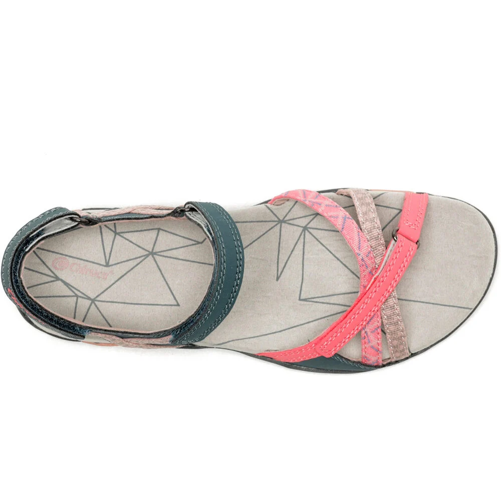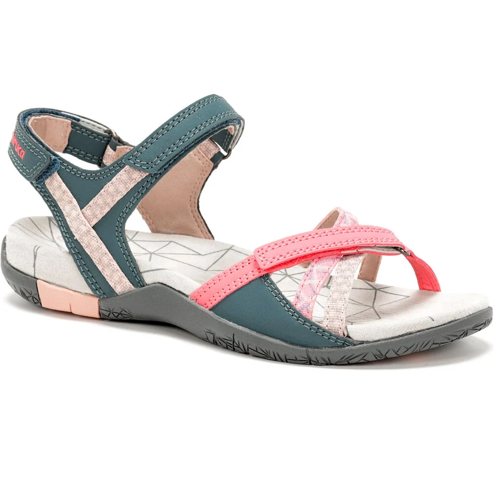 Con un corte sintético y textil, estas sandalias combinan resistencia y transpirabilidad. El cierre de velcro proporciona un ajuste fácil y seguro. La entresuela de EVA forrada de microfibra ofrece una amortiguación suave, asegurando confort durante todo el día. La suela de goma garantiza una excelente tracción y estabilidad en diferentes superficies.