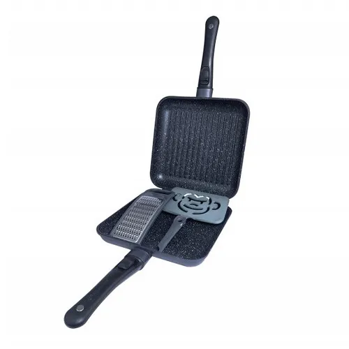 Para una mayor comodidad, el set viene con un rallador de queso y una espátula Q-Lock grande, también con su propia bolsa protectora, para que tengas todo lo que necesitas para cocinar de manera eficiente. Con un elegante acabado en gris plomo y una construcción ligera de aluminio, la Connect Pan & Griddle XXL es ideal para hacer desde tortillas grandes, hasta pizzas, pasteles, y desayunos fritos. Compatible con las cocinas tradicionales y fuentes de calor directo, esta sartén es una opción perfecta para quienes buscan calidad y comodidad en la cocina.