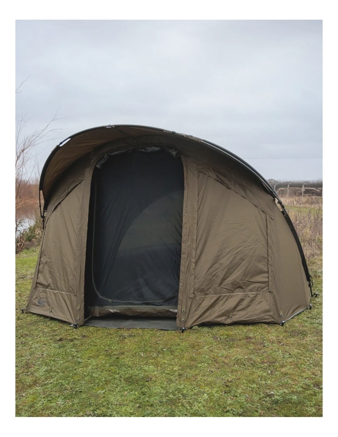 Este wrap tiene grandes paneles de malla mozzy tanto en el frente como en la parte trasera para mayor ventilación, mientras que su puerta estilo buzón ofrece tres opciones: malla Mozzy, PVC transparente y opaca. También se puede enrollar hacia atrás para crear un refugio abierto. Con un suelo resistente y clavijas incluidas, el Fox Voyager 2 Person Wrap es ideal para pescar o acampar en cualquier época del año.
