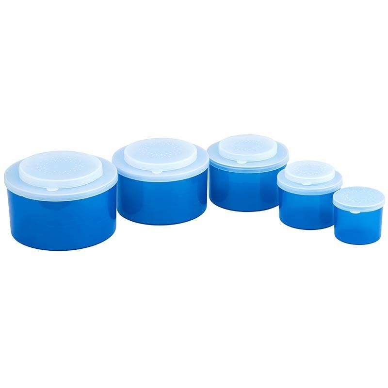 El Set de 5 Botes Medidas Oficiales Gusano Garbolino es perfecto para los pescadores que buscan precisión y calidad. Este set incluye botes de diferentes tamaños que cumplen con las nuevas normativas de la FIPSed desde el 01/01/2018. Los botes están fabricados en plástico de color azul y ofrecen medidas exactas para el almacenamiento y la manipulación de cebos como gusanos.