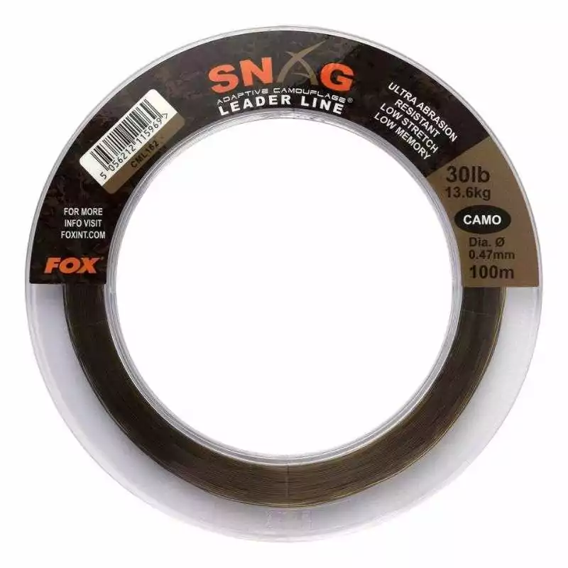 El Snag Leader Fox Camo 30LB 0,47MM x 100MTS ofrece una resistencia ultra alta a la abrasión, ideal para pescar en las condiciones más difíciles. Con baja elasticidad y memoria, junto con una fuerza excepcional en los nudos, es perfecto para los pescadores más exigentes.