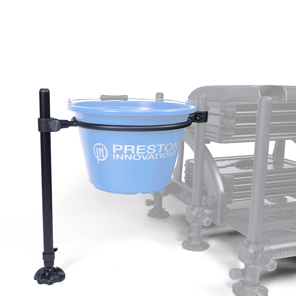 El soporte cubo OffBox Preston se entrega con una pata telescópica Absolute de 30 mm, lo que garantiza una instalación cómoda y segura, tanto en la orilla como en el agua.