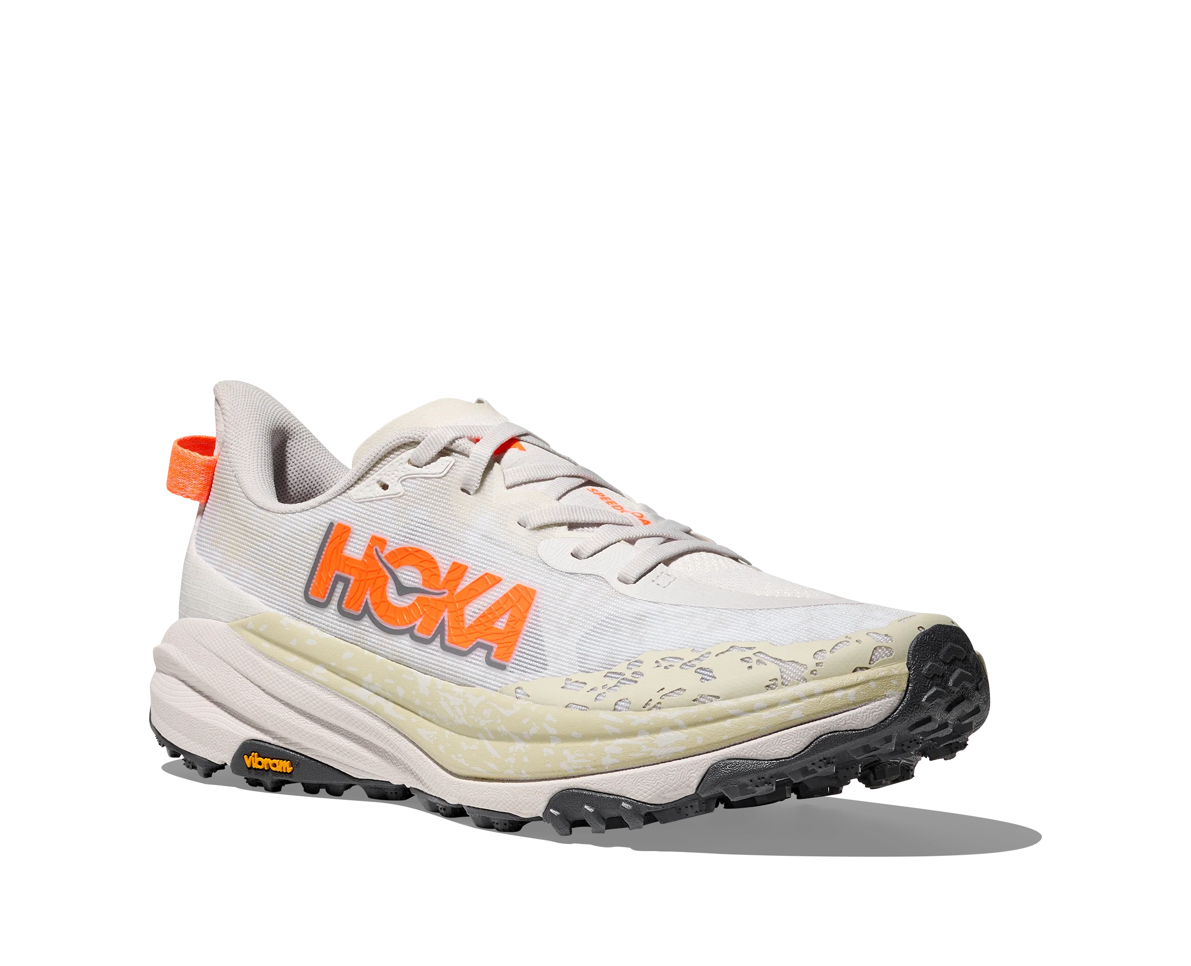 Las Speedgoat 6 para hombre de Hoka son unas zapatillas de trail running diseñadas para ofrecer una pisada con gran capacidad de respuesta y una adherencia excepcional en terrenos técnicos. Incorporan la reconocida amortiguación de HOKA, combinada con una tracción agresiva y materiales ultraligeros que garantizan rendimiento y durabilidad. Esta nueva versión mejora el empeine con tejido textil resistente, un chasis interno que se ajusta perfectamente al pie para mayor estabilidad, y una lengüeta doblemente reforzada y acolchada para comodidad. Además, su innovador diseño de tacos, inspirado en las pezuñas de cabra, optimiza el agarre en cualquier superficie. Las Speedgoat 6 son la elección definitiva para quienes buscan dominar el trail con confianza y eficacia.