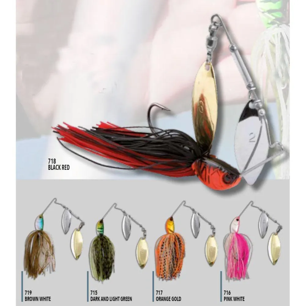 Equipado con dos palas Nomura que comienzan a girar en el instante en que el señuelo entra al agua, se convierte en un aliado inmediato para atraer peces depredadores. Su faldón de silicona proporciona un efecto pulsante durante la recuperación, añadiendo volumen y simulando una presa atractiva para los peces.