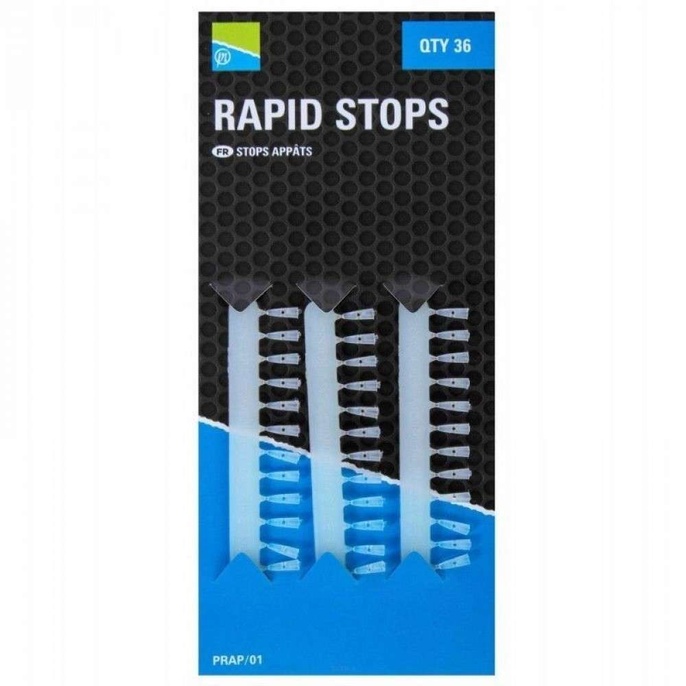 Fabricados en material transparente y duradero, estos topes son discretos en el agua y compatibles con la aguja Rapid Stops Needle. Son especialmente eficaces para cebos como maíz dulce, pellets blandos o pellets con agujero. Presentados en un práctico blíster de 36 unidades.