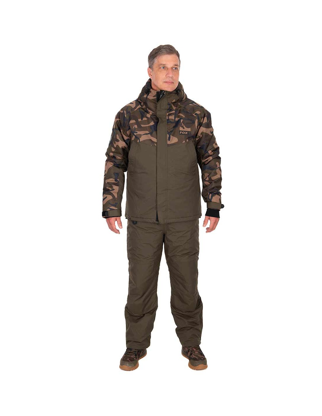 El TRAJE FOX INVIERNO WINTER SUIT está diseñado para ofrecer un aislamiento térmico de calidad, manteniéndote caliente incluso en los meses más fríos. Este conjunto de chaqueta y peto cuenta con un revestimiento de PU que tiene una clasificación de impermeabilidad de 5000mm de columna de agua, ideal para soportar lluvias y condiciones húmedas. Además, es transpirable con 3000gsm/24hr, lo que garantiza la comodidad en todo momento. La chaqueta tiene un forro de microforro polar en los bolsillos, el cuello y la capucha, proporcionando una mayor calidez. La capucha ajustable con visera y cordón elástico asegura un ajuste perfecto. El diseño de la chaqueta incluye cremallera principal bidireccional (con solapas) y un práctico bolsillo interno con cremallera en el pecho. Los petos tienen tirantes elásticos con la marca Fox y hebillas de liberación rápida, además de rodillas acolchadas e impermeables, y un forro de microforro polar para mayor aislamiento. Los petos también cuentan con cremalleras en las botas y correas ajustables en los tobillos. Este conjunto de alta calidad está disponible en tallas de la S a la XL.