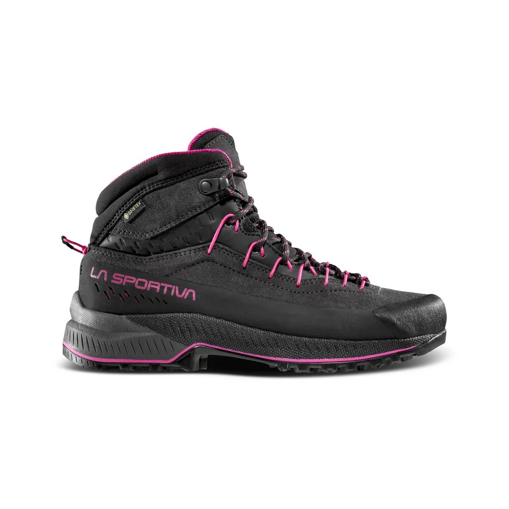 TX4 Evo Mid Woman GTX es la versión de corte medio del icónico zapato de cuero, desarrollado para garantizar la máxima estabilidad y agarre incluso en los terrenos más difíciles.