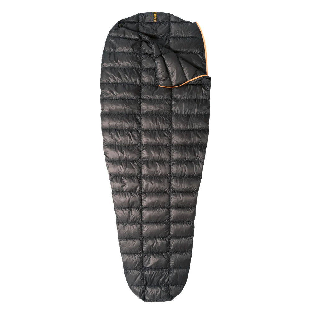El saco de dormir Ultra cuenta con una cómoda zona para los pies en forma de triángulo tridimensional de intrincado diseño, y la solapa de la cremallera evita los desagradables puntos fríos. El cuello elíptico ajustable se ajusta alrededor del cuello, minimizando las corrientes de aire y la pérdida de calor.