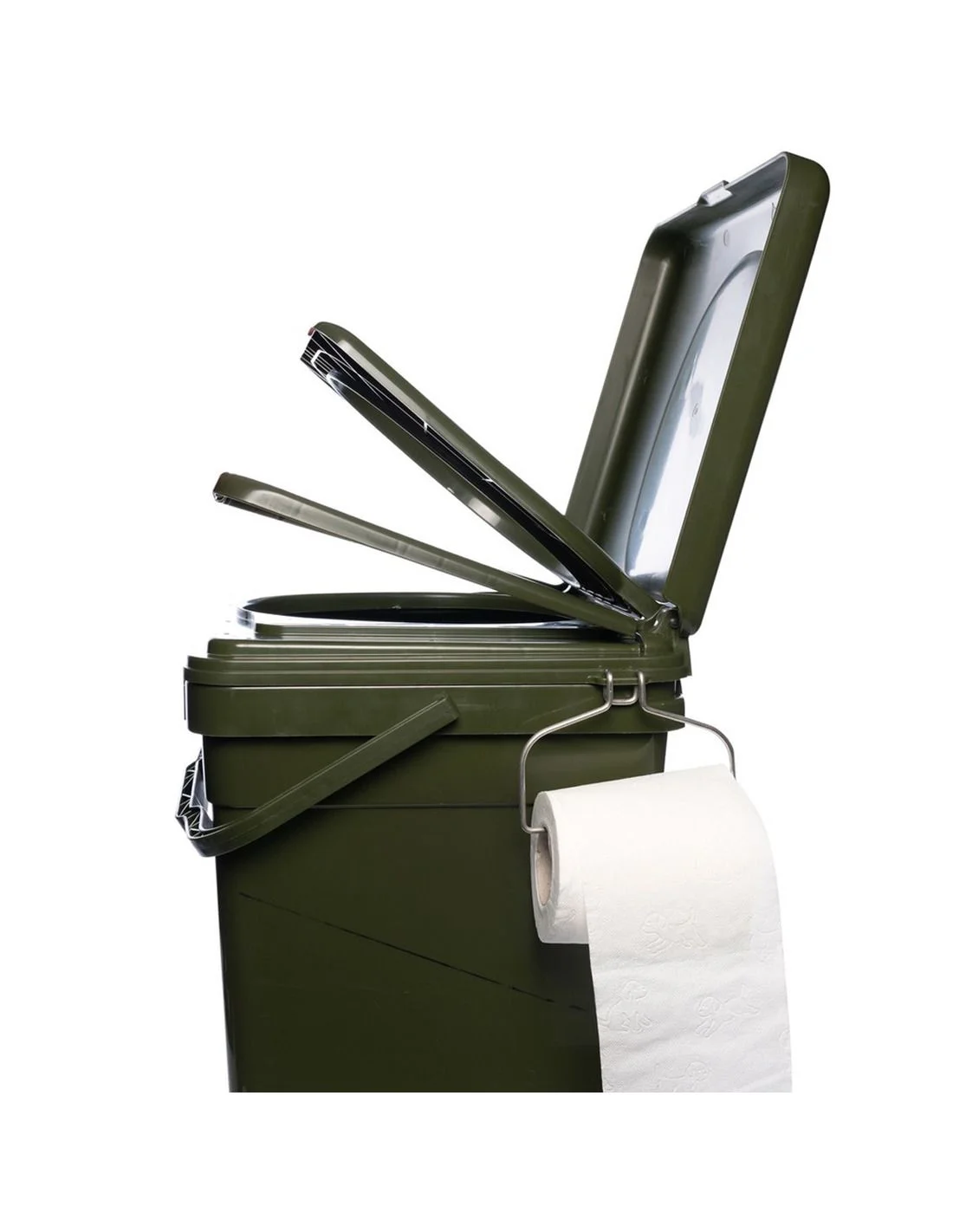 Soporta hasta 160 kg y cuenta con un asiento ergonómico con tapa plegable, portarrollos extraíble y cinco bolsas biodegradables CoZee para la recogida higiénica de residuos. Su estructura modular permite también usar el cubo para transporte de cebo o material, siendo ideal para pescadores de larga estancia y aventureros exigentes.